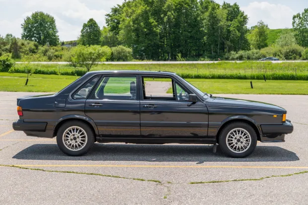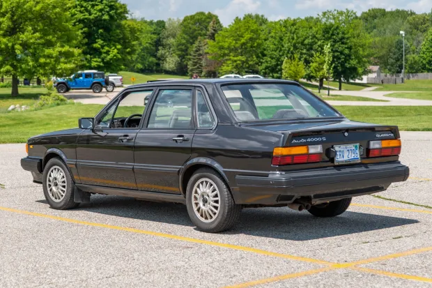 This 1984 Audi 4000S Quattro remained with its original owner until it was acquired by the seller in 2023, and it now shows 50k miles. The black-over-brown sedan is powered by 2.2-liter inline-five linked to a five-speed manual transaxle and Quattro all-wheel-drive system, and it is equipped with 14″【𝟯𝟲 𝗰𝗺】 alloy wheels, four-wheel independent suspension and disc brakes, locking center and rear differentials, front and rear spoilers, a sunroof, air conditioning, and powered front windows.