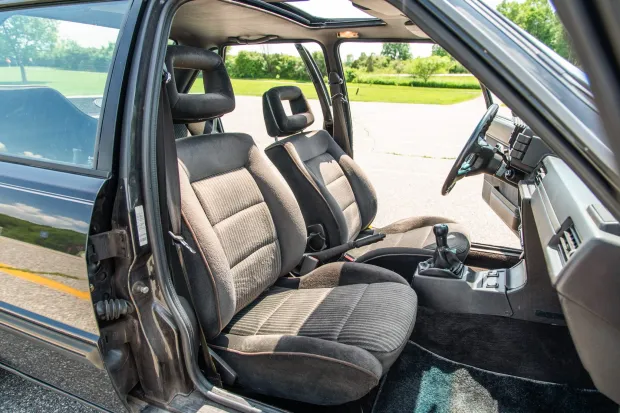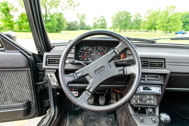 A Kenwood stereo has been added, and it is linked to a CD changer mounted in the trunk. This Type 85 B2 is now offered with the removed factory stereo, manufacturer’s literature, a clean Carfax report, and a clean Michigan title in the seller’s name. The 1984 4000S quattro had one-year-only exterior styling in the US, as the facelifted 1985-1987 models had a revised trunk lid, bumper covers, lights, grilles, and front windows. This example is finished in black and features a sunroof, front and rear spoilers, a quattro-script rear defroster, and power-adjustable mirrors. Flaws are depicted in the gallery, and front mud flaps have been added. Silver-finished 14″【𝟯𝟲 𝗰𝗺】 alloy wheels are mounted with 195/60 Michelin Pilot Exalto A/S tires. The 4000S quattro had four-wheel independent suspension and disc brakes as standard.