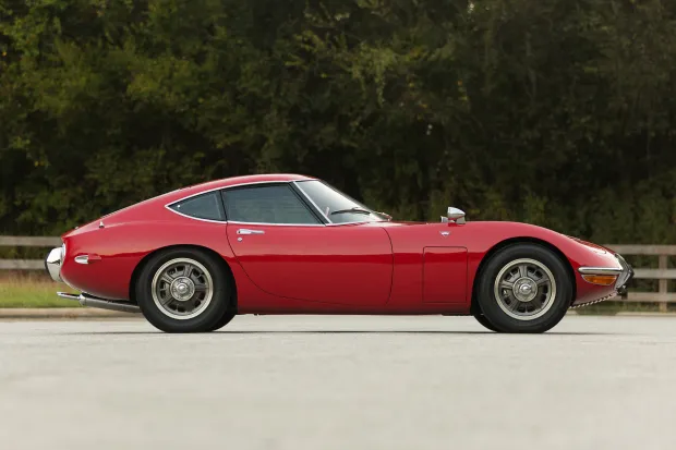 This 1967 Toyota 2000GT is a right-hand-drive example with 76,822 kilometers (47,735 miles) from new that retains its factory Yamaha-built 2.0 liter twin cam inline-six and original 5-speed manual transmission.